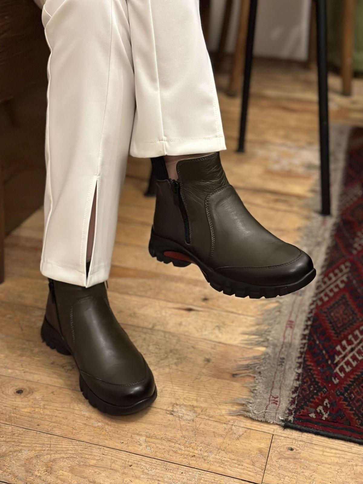 Bu fermuarlı deri bot, 3 cm topuk boyu ile tam kalıp seçeneği sunar. Hakiki deri malzemesi ile üretilmiştir ve sağlamlık ve lüks konularında mükemmel bir seçenek sunar. Ürün, fermuarlı tasarımı ile kolay giyinme ve çıkarmanızı sağlar. Aynı zamanda güncel moda trendlerine uygun bir tasarıma sahiptir ve günlük kullanım için mükemmel bir seçenek sunar. Hakiki deri malzemesi, ayaklarınıza konforlu ve kalıcı bir his verir, böylece uzun süreli kullanım için ideal bir seçenektir.